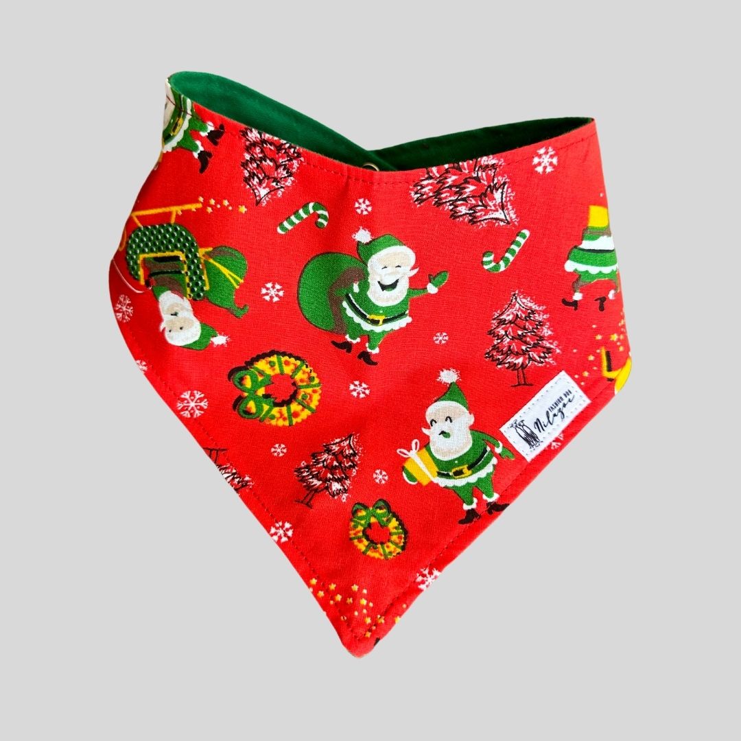Confeccionadas em tecidos macios e respiráveis, as bandanas possuem acabamento delicado e estampas natalinas exclusivas, que traduzem o espírito alegre e acolhedor da temporada. O fechamento prático e seguro garante fácil colocação e ajuste perfeito, sem apertar o pescoço.