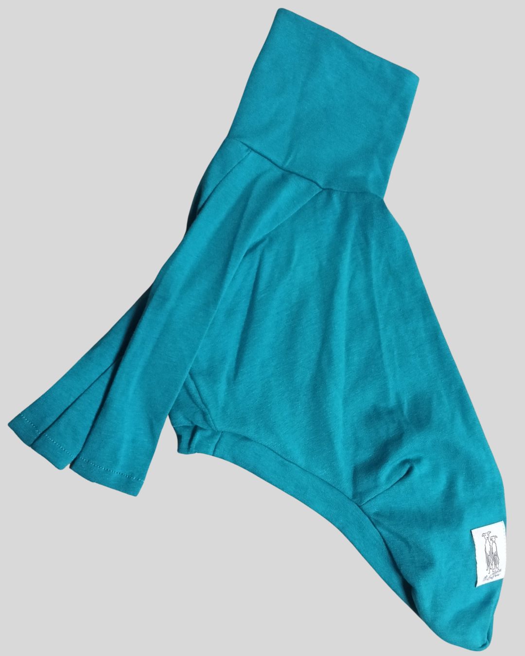 O turquesa é vibrante e luminoso, trazendo energia e modernidade ao visual. Uma cor que destaca ainda mais a silhueta elegante do galgo e cria contraste bonito com diferentes pelagens.