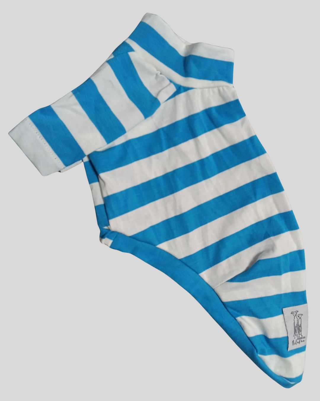 A Algody Cool Branco e Turquesa é frescor em movimento. As faixas em branco e turquesa criam uma sensação de leveza visual que acompanha o passo elegante do galgo, iluminando o corpo e transmitindo calma. O contraste suave alonga a silhueta e valoriza o desenho natural da raça, sem pesar o olhar.