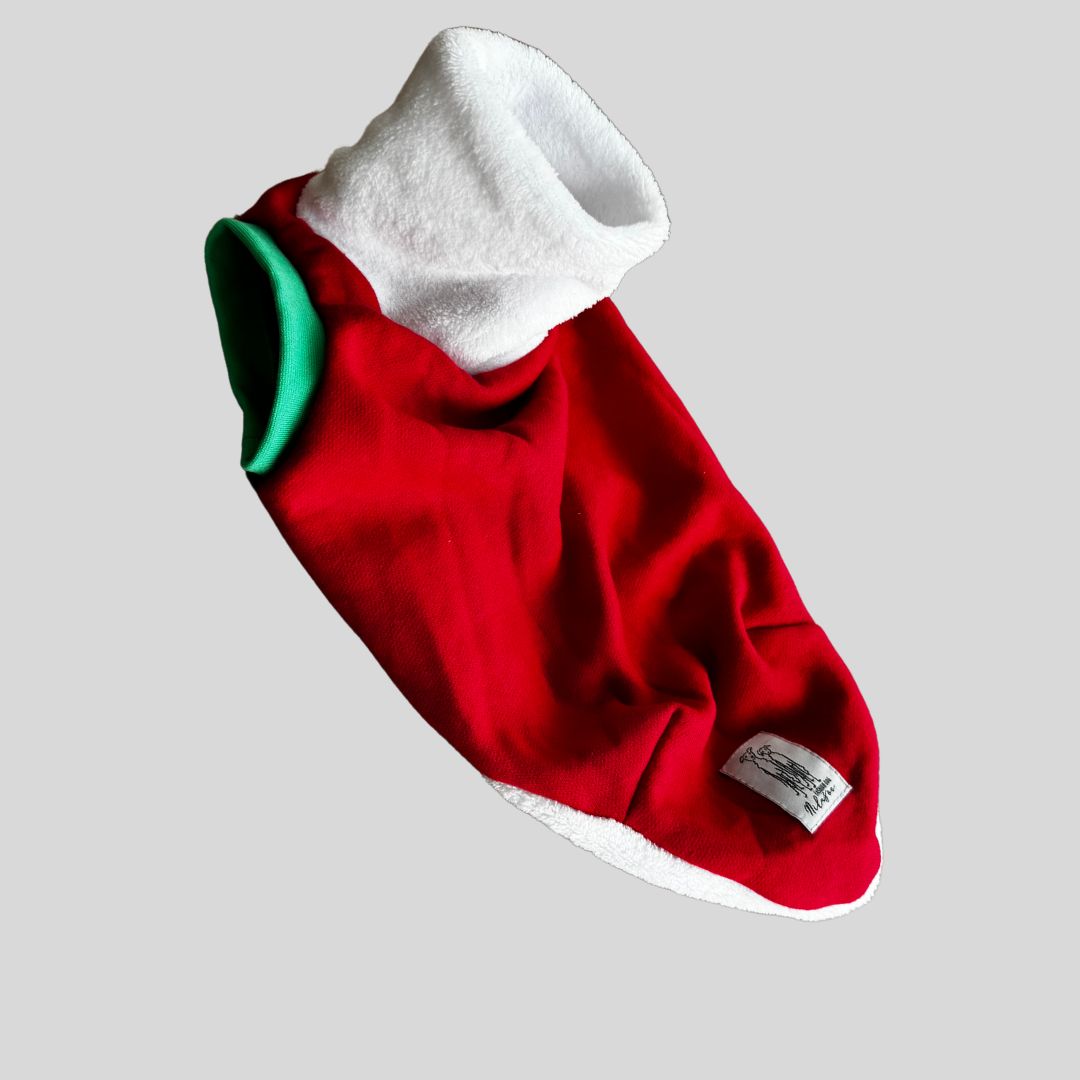 Tecido de moletom felpudo, ideal para ser usado nos dias frios, com todo o ESTILO E CONFORTO que seu pet merece e necessita. para fazer todo Estilo Natalino.