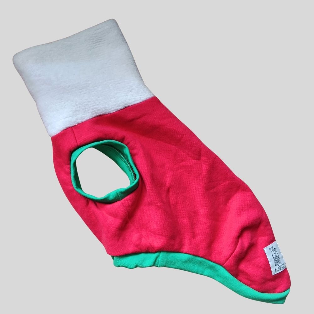 O Colete de Galgo Natalino foi criado para envolver seu magrelinho em todo o encanto e aconchego dessa época tão mágica do ano. Confeccionado em moletom felpudo quentinho, com detalhes em microfibra e malha grossa, ele abraça o corpo elegante do galgo com leveza e carinho, como se fosse um abraço natalino que aquece o coração.