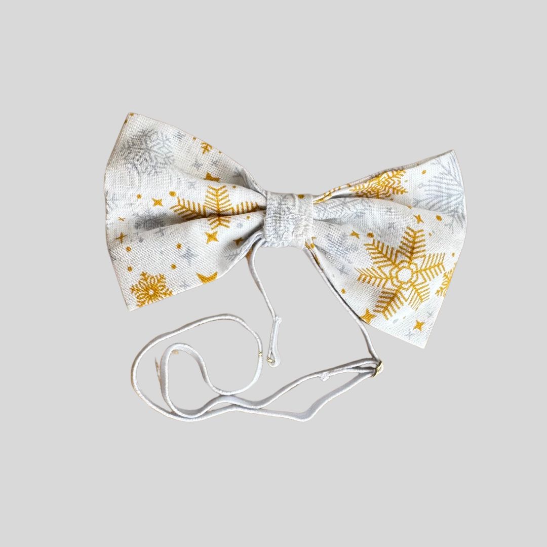 GRAVATA DE GALGO BORBOLETA BRANCO DOURADO PE. Pode ser ajustado com o elastico que tambem é de algodão bem macio que nao ira machucar o pescoço.