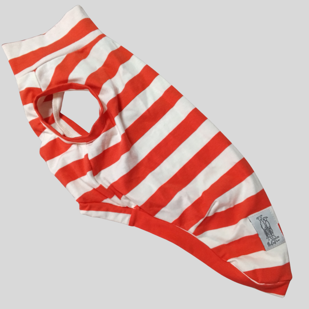 A Regata de Galgo Algody Cool Laranja e Off nasce do encontro entre design consciente e conforto real. As faixas alternadas em laranja suave e off criam um visual leve e contemporâneo, pensado para valorizar a silhueta alongada do galgo sem excessos.