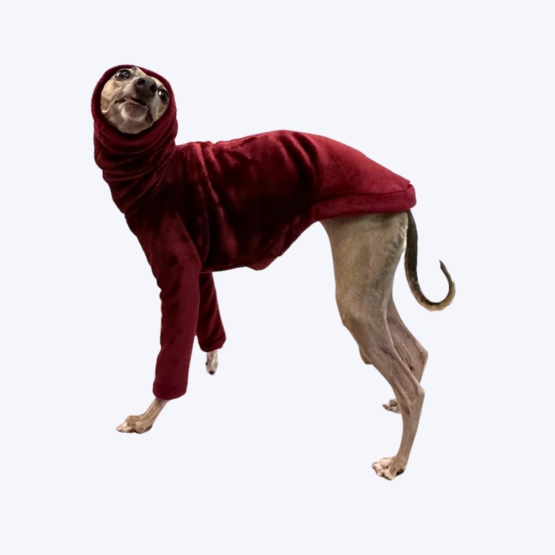 Blusa em tecido Fleece Premium de altíssima qualidade, com toque extra macio, leve e ótimo isolamento térmico. Não desfia e é muito durável. Com modelagem que acompanha a anatomia do corpo dos galgos, gola girafa que protege pescoço e orelhas do frio e vento, sendo ideal para os dias mais frios, proporcionando um equilíbrio entre leveza e aquecimento