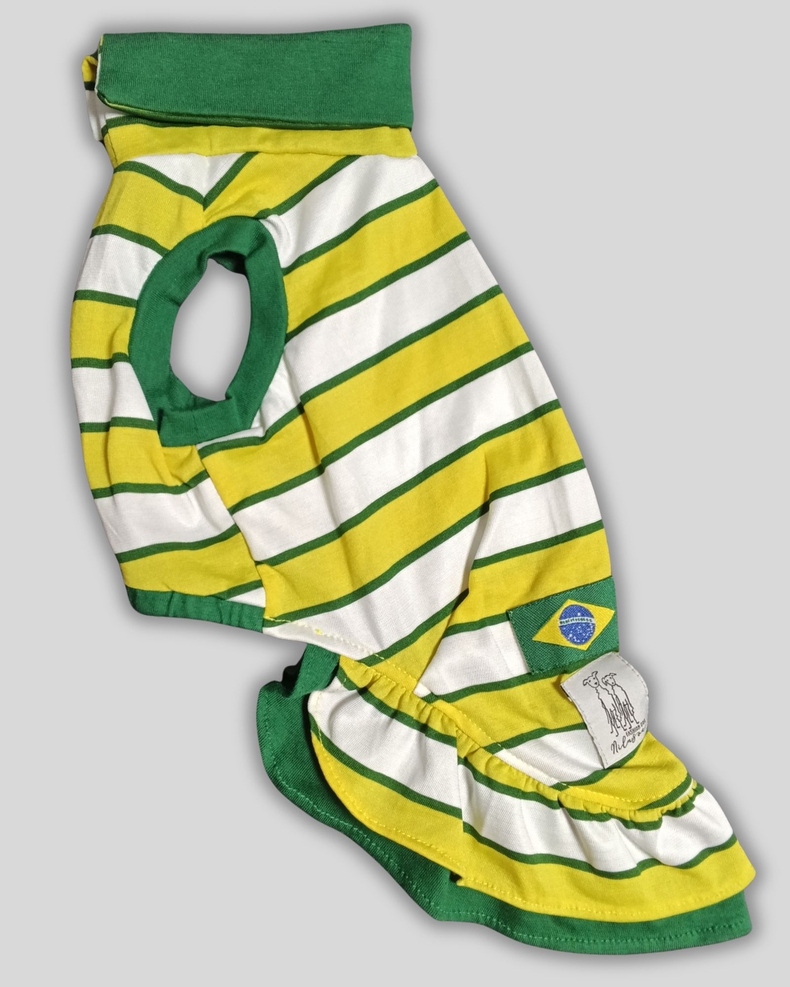 O Vestido de Galgo Copa Polo Verde, Branco e Amarelo foi desenvolvido especialmente para o corpo esguio dos galgos. Com modelagem anatÎmica exclusiva, a peça se ajusta com suavidade, proporcionando conforto e liberdade de movimento.