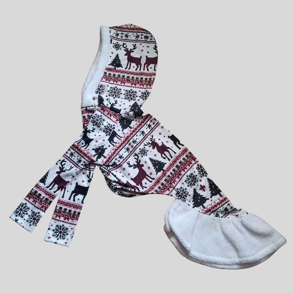 É uma peça pensada para transformar seu galgo em um pequeno poema de Natal: elegante, confortável e cheio de ternura.